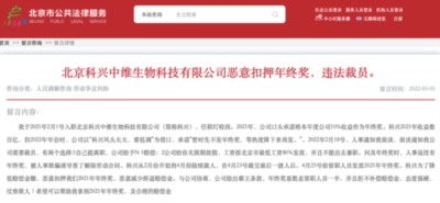 近日,有网传消息称,某疫苗生产企业恶意扣押年终奖、违法裁员。