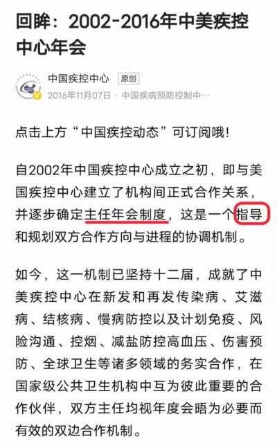 《回眸2002-2016年中美疾控中心年会》一文含情脉脉的指出中疾控与美疾控是一个指导和规划双方合作方向与进程的协调机制。