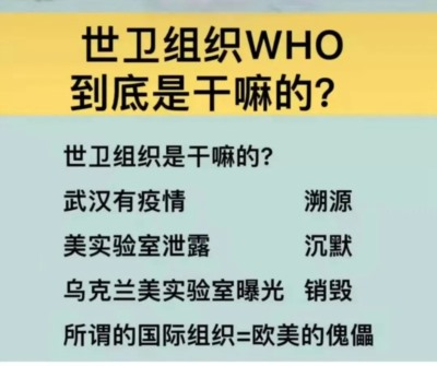 世卫组织是干嘛的?这种问题根本不是智商问题,一个脚指头也能认清形势。不是西方人双标狗,而是他们本身就是狼狈为奸,让他们互相伤害,简直是痴人说梦。