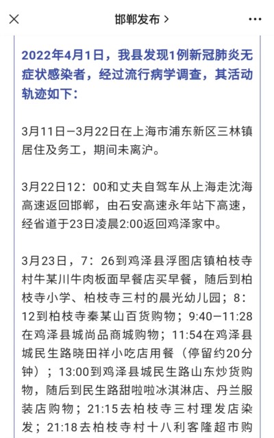 4月1日,邯郸再次发现1例确诊病例,为上海务工返乡人员: