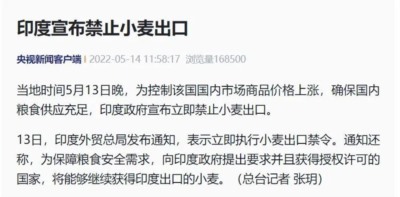 不幸的是,资本总是能嗅到最前沿的商机,出于出口需求强劲的预期,印度的私营粮食交易商大量收购小麦,再加之近期高温对小麦生产的影响,导致印度国内4月小麦价格攀升至10年来最高水平,同比上涨6.95%。