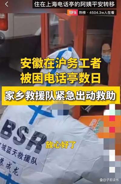 当然,还有安徽务工的阿姨被困在电话亭数日,最后被老家的救援队紧急救助的消息。