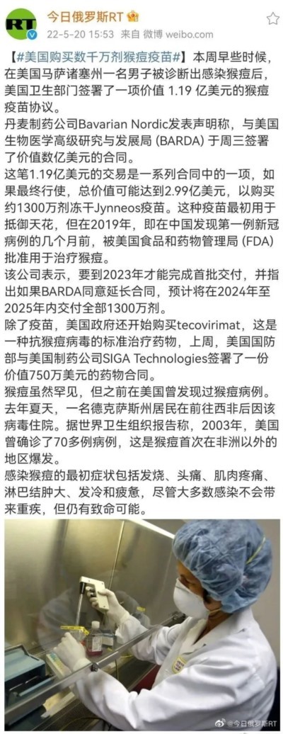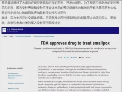 从时间上看,在2003年和2022年美国两次出现猴痘之前,美国军方分别在2002年和2021年,提前接种过研制的天花疫苗,两次都表现出超强的预见性。