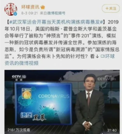 在2019年10月,美国的霍普金斯大学和盖茨基金会举行了一场新冠病毒全球大流行的演习,代号为event-201,演习的主要针对政商界应对“新型冠状病毒全球大流行”的应对处理能力,制定跨国公司和政府应对方案。