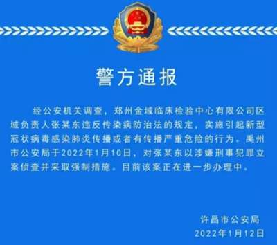 2022年1月12日,河南许昌公布了一条新闻,这则新闻犹如晴天霹雳,击中了疫情中最丑陋最邪恶的一幕,开启了对核酸犯法追究的先例。