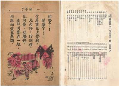 比较大的区别是把“国语”改成了“语文”,大家耳熟能详的《吃水不忘挖井人》、《猴子捞月亮》第一次出现在这套版本教材。