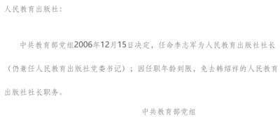 比如2022年5月17日,人教社刚刚任命了两位新高层[14],副社长付天华之前是人教社教材事业部的总经理,副总编辑朱于国之前是人教社中语室主任,同样是人教社的老班底,你说谁愿意站出来翻案呢?