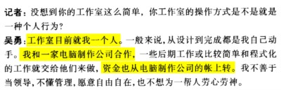 吴勇设计工作室只不过是挂靠在某个单位名下的一个一人办公室,负责走个账而已。(来源:《吴勇设计工作室访谈录_梁梅[13]》1999年)