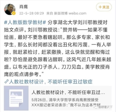 经常在网上看到所谓专家、教授们的高论,我总是在思考一个问题:专家教授们的水平应该是要高于普通网友,然而,为什么一个简单的道理都弄不明白呢?教材是面对全国中小学生的,影响的是他们还没有定型的三观甚至一生的成长,所以,教材问题从根本上是意识形态问题。曾几何时,极度丑化本土文化获取西方赞赏成为很多专家学者、大师教授的价值追求,甚至还能拿到境外反华势力的大奖,这些所谓的专家教授们在文学作品、大学课堂、中小学教材、大众媒体、互联网络等舆论阵地上占据主流,已经毒害了几代、多少青少年了?
