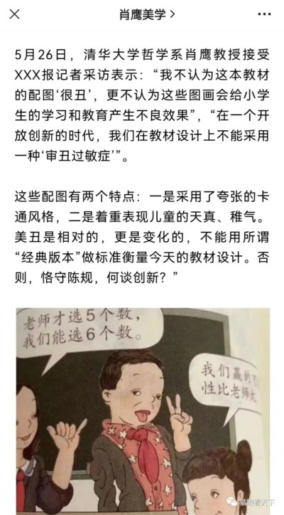很多人可能并不一定知道,给教材投稿(文章、绘画)是有报酬的,而且这种报酬还不低,教材是从来不用为销量发愁的,而且还有作为原创的版权费用,当然,劳动获取报酬是理所应当的,但无论是什么人,绘画师也好,编教材的也罢,审核的也好,出版社甚至教育部的行政主官也好,至少你要是个人,要知道做人事,基本的人性都没有,专门挑那些下三滥的图片去坑害学生,毒害下一代,钱是赚得更多了,可他们真的就不怕会有报应吗?