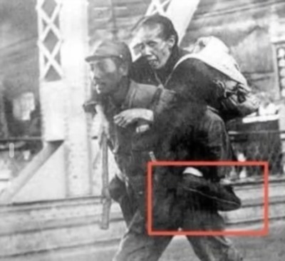 值得一提的是,在该照片中侵华日军士兵驮负的老人脚后跟是向后的,即照片拍摄时老人的脚踝已被扭断旋转!