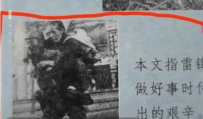 试问,“陕西人民教育出版社”在重现雷锋做好事的画面时,偏偏就选择了这张堪称意味深长的插图,他们,又究竟想要表达什么?