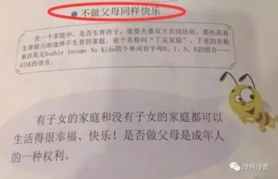 这套性教育读本不仅仅赤裸裸给11—12岁左右的孩子宣扬灌输性解放观念,还给孩子们宣扬非异性恋、不婚主义、不生孩子、不做父母等丁克思想。