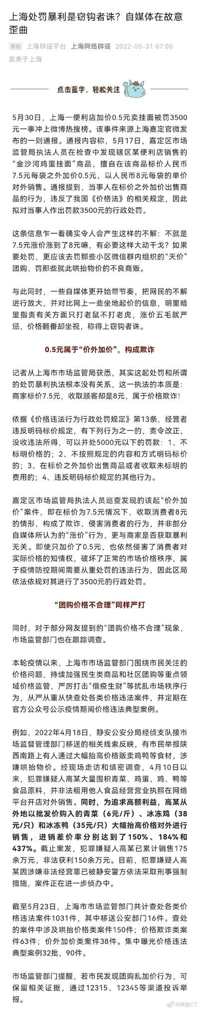 我当然不否认,自本轮疫情以来,上海市监局已经打击查处过多起价格违法案件。