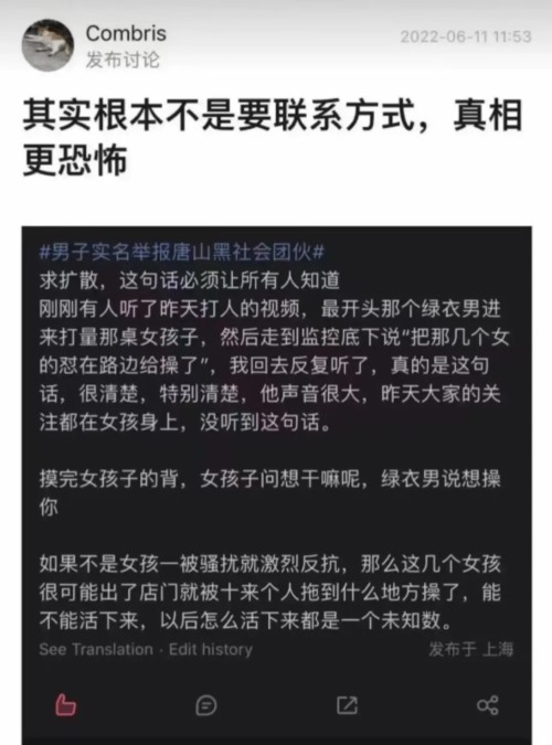 这起唐山打人恶性事件,完全挑战了社会的底线,践踏了法律的尊严,触碰了所有人的敏感神经。按情节是在公众场所公开行兇,而不是简单的打人斗殴,这是赤裸裸在向世人显示暴力,展示他们恐怖手段的行径,已超出法律法规的底线,要比刑事杀人犯罪严重的多,属于反人类罪。现在这种环境正常情况下,除非脑子坏了、恶贯满盈之徒,不然无论是什么人,都不会也不敢干出这种丧尽天良的事情。