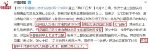 6月12日23时许,河北唐山通报:近日,张某在网上实名举报朱某斌、杨某等人在唐山市路北区某酒吧对其及同事进行殴打并非法拘禁。
