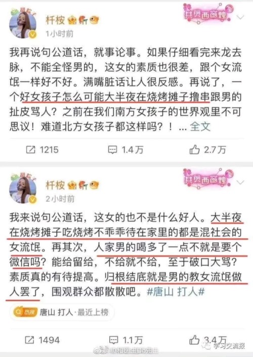 最近,两个事情比较火,一个是唐山打人事件,另一个是上海外国语大学的咖啡事件。凑巧的是,这两起事件都是一方为男性,另一方为女性,且两起事件的受害方都是女性。这就为一部分人鼓吹性别对立和受害者有罪论提供了“契机”。