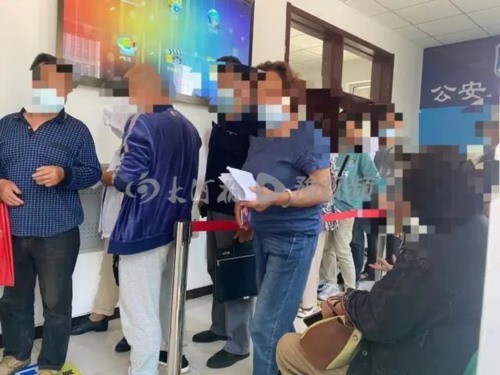 在唐山市公安局门口,百余人在等待反映问题。有的人坐在路边,有的人带着马扎,有的人坐在三轮车上。有的人从早上7点就到现场排队,等了4个小时还没进屋反映上问题。