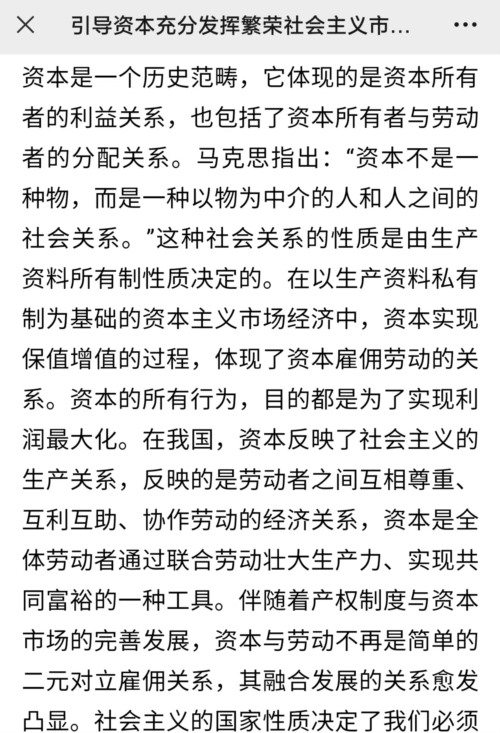 前几天,《光明日报》发表了一篇文章《引导资本充分发挥繁荣社会主义市场经济的积极作用》,里面提出了一个骇人听闻的观点:“资本反应了社会主义的生产关系”: