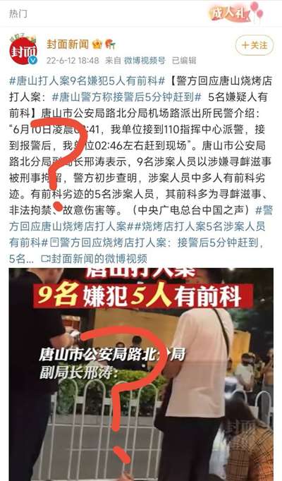 1.关于出警时间为何前后矛盾?唐山警方接警报后耗时28分钟才到现场?