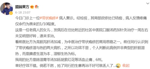 中医的方法则比较多,笔者在微博上就见到好些中医医生分享过带状疱疹的治疗方法或是医案。