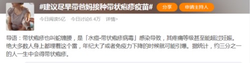 带状疱疹疫苗昨天又上热搜了,这一次的热搜不管是阅读量还是讨论量都很高,下图是笔者昨天上午截的图,当时已有5亿的阅读,十分了得。
