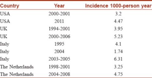 西方一些国家带状疱疹的发病率