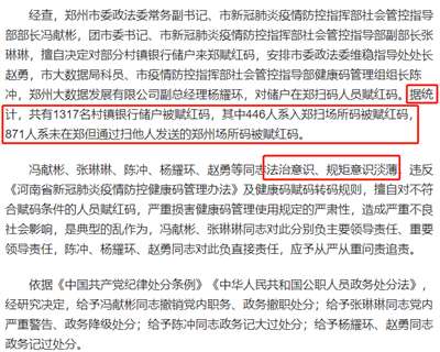 简言之,就是多名涉事官员因法治意识淡薄、乱作为而受到撤职、警告、记过等处分;共有1317储户被红码,其中446人在郑州,871人不在郑州。