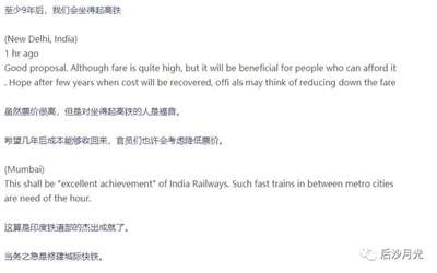 2015年印度确定与“日本国际合力集团”合作后,印度网友对高铁的期待。