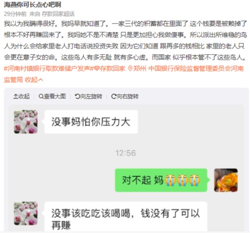 老百姓都认为银行有国家信用做保障,把钱放在银行是最安全的,谁曾想却羊入虎口,毕生积蓄打了水漂。而且维.权无门,人在家中坐,红码天上来,当地政府没有保护储户利益,却把其当中维'稳对象。虽然红码的始作俑者被调查,但储户的存款依然令人望眼欲穿。