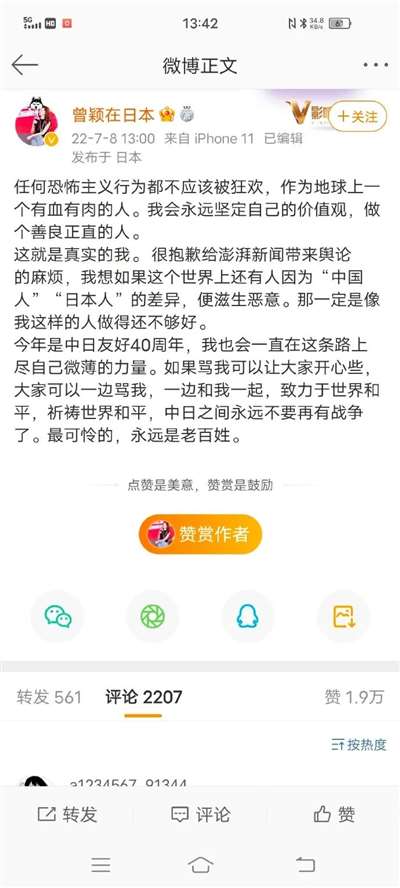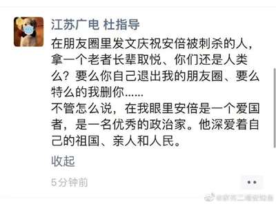 澎湃新闻驻日记者曾颖,昨天七七事变,发了一条日本抽奖的,发了一条余秀华的,今天为安倍晋三发了一条,还在新闻直播中哭泣,还把日本首相称呼为日本总统……