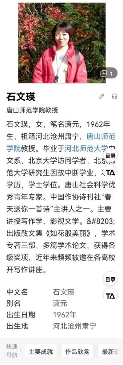 唐山师范学院中文系教授石文瑛
