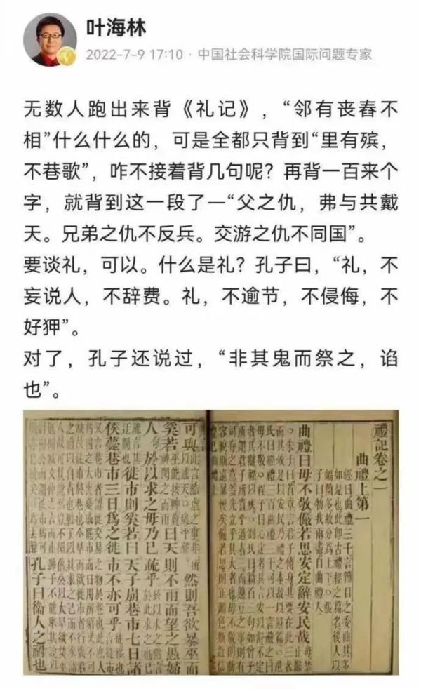 所以,看到这些人步调一致地片面引述经典“邻有丧,舂不相;里有殡,不巷歌”,都快被恶心吐了。丫们就不能把后面的内容也一并引用完整?