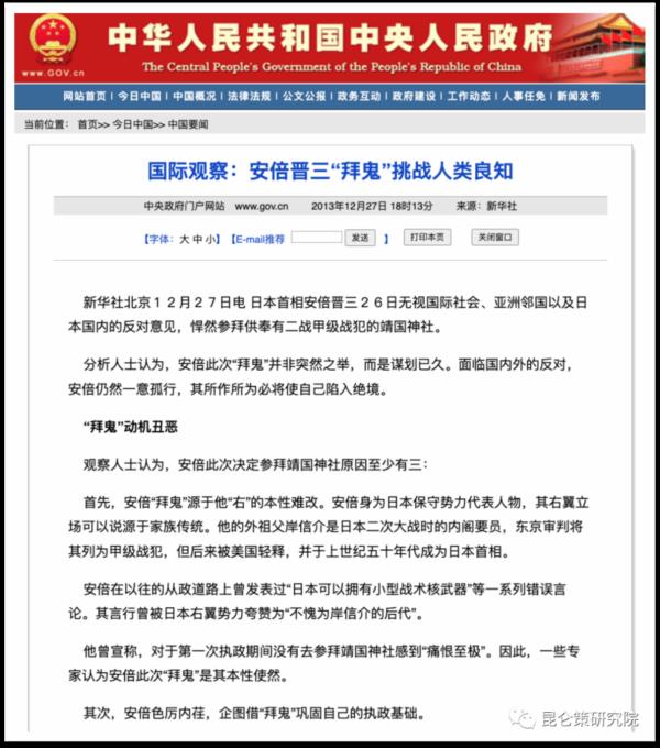 7.2013年12月26日,安倍晋三在其第二次执政满一周年的日子首次以日本内阁总理大臣的名义正式参拜靖国神社。