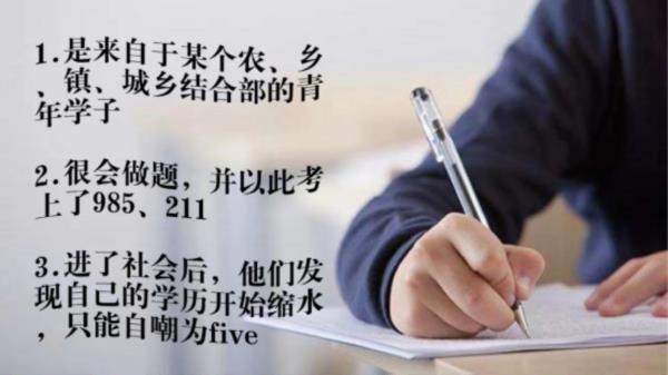 那些出身小城,擅长应试,通过高考跻身知名大学,却依然过得不好的人(five就是废物的简称)。
