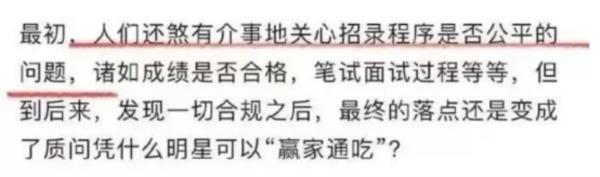 你看,这些小镇做题家们,日以继夜地刷题,终于考上了不错的学校,可毕业依然找不到好工作,而明星们不需要笔试就可以轻轻松松进入带编制的“国家级殿堂”。