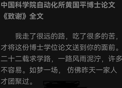 当初黄博士的致谢信,全网刷屏,人人都在称赞小镇做题家的励志故事。
