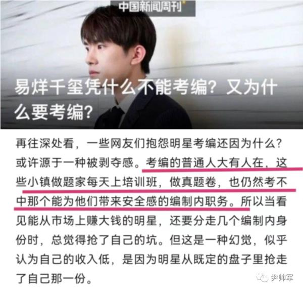 而现在,为了破除这个大忌,就可以用易烊千玺考编这样的事情一次次开路、试探。