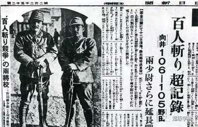 两个人从句容杀到汤山,又从汤山杀到南京,两人在紫金山下相遇,彼此军刀已砍缺了口。经过统计,野田毅杀了105人,向井杀了106人。