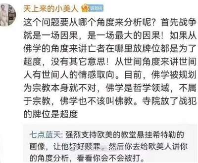 还有人狡辩说:佛教普渡众生,无论是罪犯蝼蚁,都在佛家的超度范畴内,那我要问一句,西方天主教、新教教堂里,有没有希特勒的雕像?按照宗教的说法,恶贯满盈法西斯人渣败类,就算死了,也该下十八层地狱,入畜生道,永世不得超生。