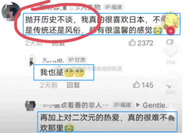 没脑子的猪还不是一个两个,有说“抛开历史不谈,我真的很喜欢日本,不论是传统还是风俗,都有很温馨的感觉”的,还有说“再加上对二次元的热爱,真的很难不喜欢那里”的,这未免太自作多情了,你爱日本,日本爱你吗?