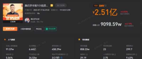 早在7月17日之前,罗敏就在试验一套高额成本换取高额流量的平台逻辑,在6月份的一场直播中,罗敏用三个半小时卖出了205万元,而据《凤凰网》报道,蝉妈妈的数据上显示该场直播中,有97%的流量来自于“其他”。 而这个“其他”,就是趣店购买的“投流”。 尤其是在淘系、快系“一哥”、“一姐”缺位的历史机缘下,罗敏属实利用“投流”抓住了一个完美的“作秀”时机。