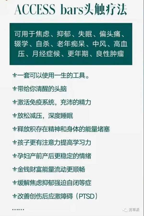 经网友爆料及“补壹刀”查证,一个推销名为AccessBars的课程的组织,打着心灵成长的旗号,近几年悄悄从美国传入中国,其成员自称心灵领域工作者。