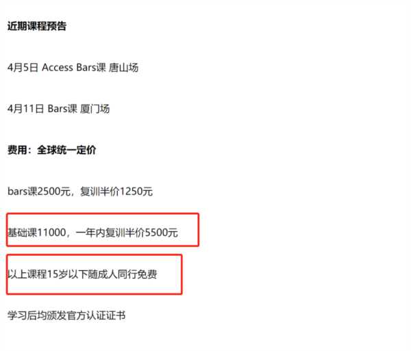 主要是售卖课程,基础课11000,一年内复训5500元,bars课2500元,复训半价1250元。学员只要上一天课就可以获得“国际认证”,成为执行师。