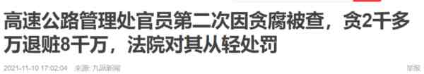 高速路恰恰是最肥的肥缺之一,车水马龙过路收费纯纯的现金,腾挪转移之间肥了无数人。随手一搜,这个领域小吏巨贪比比皆是。譬如这位小小的科级,被指控贪了两千多万,却退了八千万,而且这还是他第二次贪腐被查,结果依然从轻处罚。