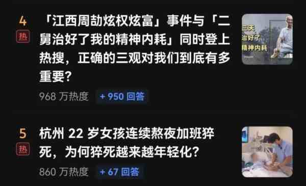 是的,在那时二舅一定想不到多年以后,和他同上热搜的是“江西周劼炫权炫富”“杭州22岁女孩连续熬夜加班猝死”。