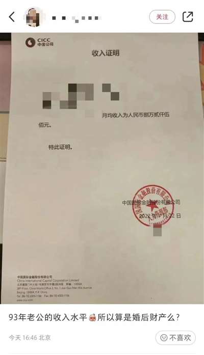 昨晚,中金公司“高薪炫富”的截图被广为流传,93年老公,月收入8.25万元,也就是年薪99万。