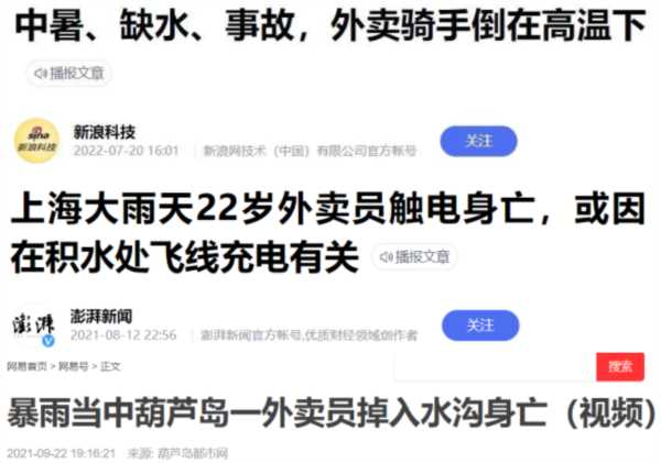 为了得到想要的工资水平,外卖员群体只能冒着猝死、中暑以及超速、逆行等各种可能意外伤亡的各种危险,风里来、雨里去,拿命换钱。