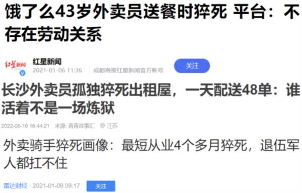 每天工作15个小时,全年无休,一开始甚至每天只睡四五个小时——面对不断发生的外卖员过劳猝死新闻,树立这样的典型是还想进一步逼迫外卖员的“潜能”吗?