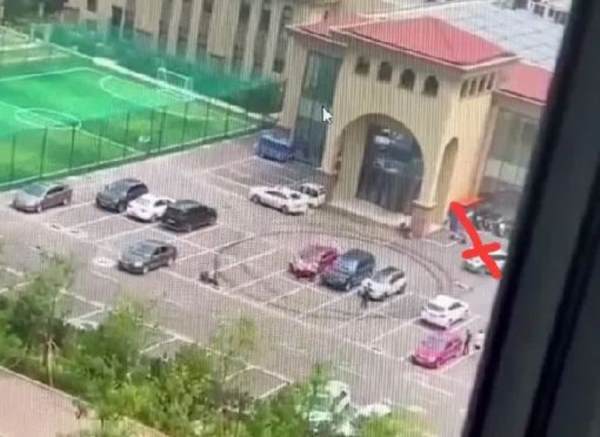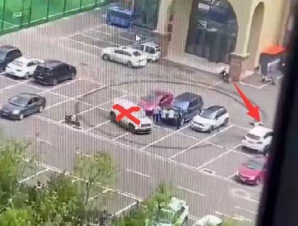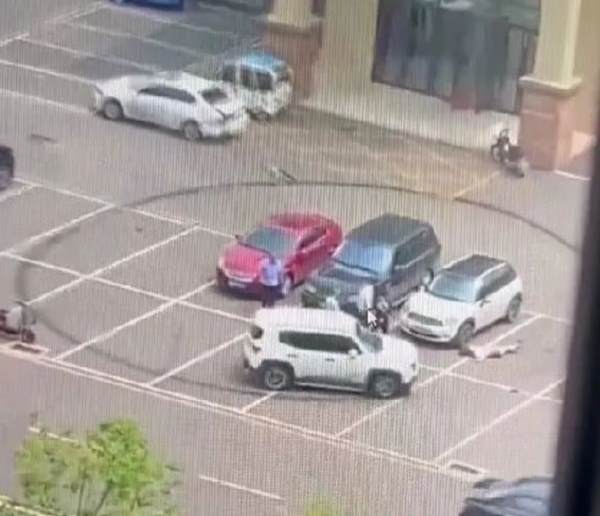 你以为他会就此罢手吗?并没有,他依然驾着车碾压,地面上被画出一个大圆圈的印记,到最后他又妄图倒车碾压。